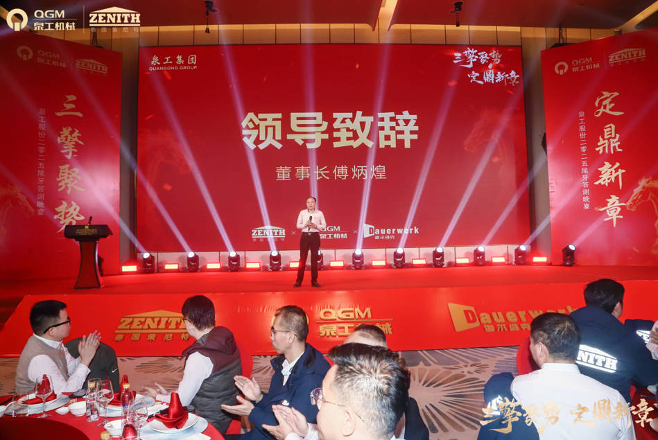 ผู้เข้าร่วมได้รวบรวมตัวแทนจากทุกแผนกและทุกบทบาท ยกแก้วขึ้นเพื่อเฉลิมฉลอง และเพิ่มความรู้สึกเป็นส่วนหนึ่งผ่านการสามัคคีธรรมและการแลกเปลี่ยน “Three Engines Driving Momentum” ไม่เพียงแต่เป็นธีมประจำปีเท่านั้น แต่ยังเป็นแรงผลักดันเบื้องหลังการพัฒนาในอนาคตของ Quangong อีกด้วย ในปีใหม่ Quangong Co., Ltd. จะยังคงใช้ประโยชน์จากนวัตกรรมทางเทคโนโลยีเป็นกลไกต่อไป สร้างขึ้นจากรากฐานของอุปกรณ์ทำอิฐคุณภาพสูง และขยายการแสดงตนในตลาดทั่วโลก บริษัทจะเดินหน้าพัฒนาเครื่องจักรอิฐไม่เผาและอุปกรณ์ขึ้นรูปบล็อกอย่างต่อเนื่อง ซึ่งจะช่วยเสริมความแข็งแกร่งของ Quangong ในการพัฒนาการก่อสร้างที่เป็นมิตรต่อสิ่งแวดล้อม